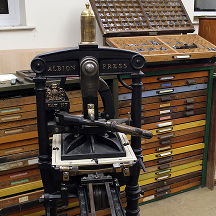 My personal interest in William Parks began many years ago when one of my American clients, who specialises in early Americana, sent me a copy of one of William Parks’ imprints for restoration. Having discovered his Ludlow roots, I decided to reprint the Ludlow Postman on our 1865 Albion press [Fig. 3]. This proved to be more difficult than initially thought, as the paper used for newspapers in the eighteenth century was of very poor quality I could not find a single complete copy that was either in good enough condition to produce a facsimile or was robust enough for the owners to allow out for photographing. As a result, I took the decision to reset all the type and redraw the woodcuts on the heading from the fragments that I had managed to track down. This facsimile copy is now available from The Bindery Shop, 5 Bull Ring, the room right next door to William Parks’ first print shop.